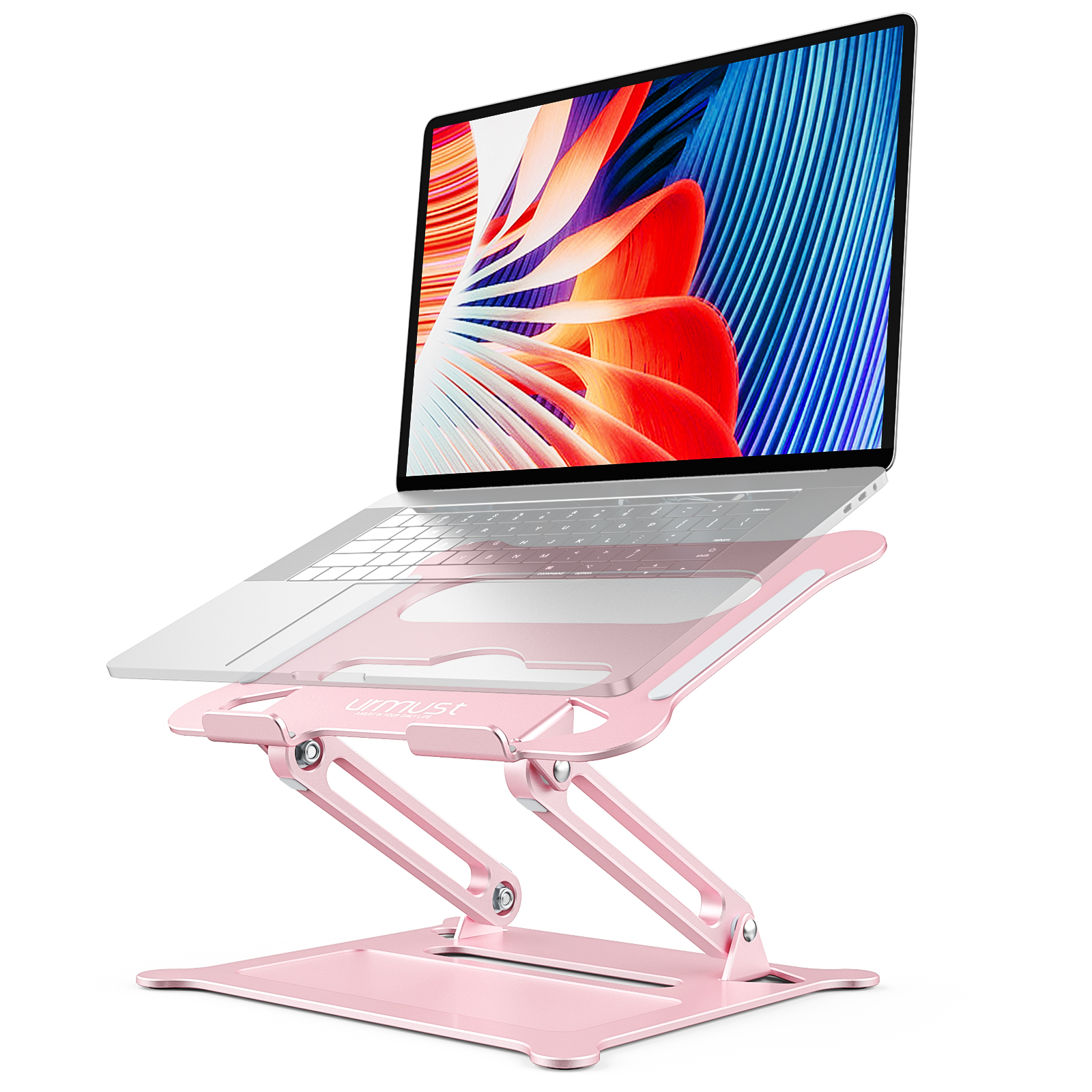Protective Stable and Foldable: Urmust Adjustable Laptop Stand is sturdy to support up to 8.8 lbs(4kg); the rubber on the holder's hands sticks tightly, ensure your laptop stable on the stand and prevent any scratches.Foldable to save space for easy storage and designed handle hole for easy carrying