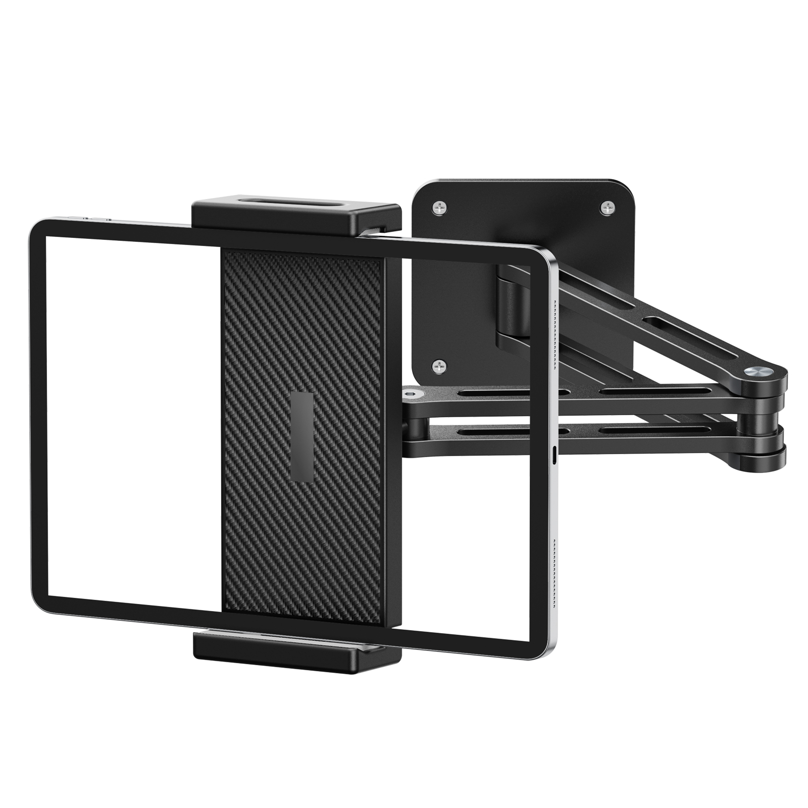 【360° Rotatable & Adjustable】The ipad wall mount offers two adjustable arms and a 360° swivel ball head for flexible positioning. Easily switch between horizontal and vertical orientations for optimal viewing