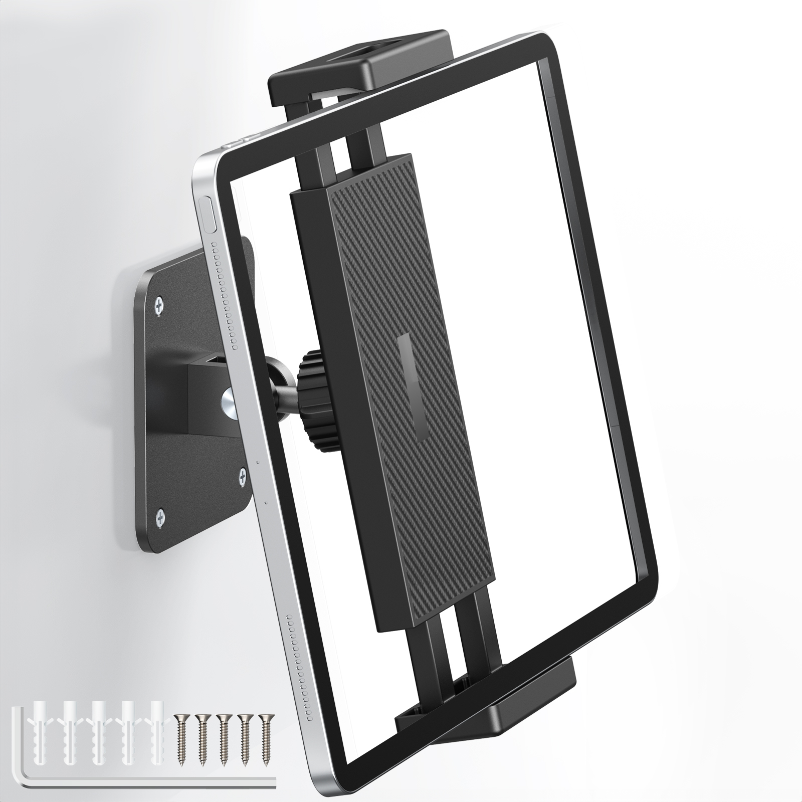 【STURDY & DURABLE DESIGN】The iPad wall mount features a high-strength aluminum alloy base, ABS connectors, and an enhanced grip clamp with anti-slip rubber pads to protect your device from scratches and sliding